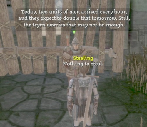 web拍手のレス~ ダイエット・・・ 耳が痛いです(汗 実は私もiphoneユーザなのですが、何かよさげな記録アプリですね!何を使われているのですか? by北民 北民さんもiPhone持ってたんですね。 私が使ってるアプリは、 RecRecDiet http://www.susiea.jp/recrecdiet というアプリです。 ぶひさんに勧められたのですが、気軽に記録できて重宝しています。 450円とiPhoneアプリにしてはやや高めで、操作性もいまいち良くない時がありますが、 買う価値はあると思いますよ。 お互いダイエット頑張りましょう。 ------------- 今日は画像をPicasaにアップしてみることに。 Flickrと比べてどっちも一長一短かも… 詳しくはまた後日。 ---------------- パナソニック、Core i5-520M搭載の「Let'snote」春モデル http://pc.watch.impress.co.jp/docs/news/20100125_344176.html パナソニック、Core i7を搭載した「Let'snote R9」 http://pc.watch.impress.co.jp/docs/news/20100125_344174.html レッツノートの春モデルはCPUがアップグレードされただけか… この中で私が買うとしたらF9かねぇ。 ----------------- 日曜は相変わらずだらだらしてたら、あっという間に昼間が終わって、 夜にDragon Age: Originsの動画を整理。 録画した分は全部片付けたところで、MonsterXの取り付け。 しかし前にも書いたけど、左下のグラボの下にある板みたいなのがMonsterXなわけですが、 グラボとの距離は何とかならないのかねぇ。 5mmも空いてない気がするんですけど。 一応MonsterXは今のところ無事に動いています。 ブルースクリーンは今のところ起こらず。 でも前も最初に導入していた時は安定していた気がするから様子見。 それで再び据え置き機が遊べるようになったので、 Xbox360おEnd of Eternityの体験版を遊んでみました。 うーん、微妙な出来だなぁ… RPGの体験版って戦闘だけ遊ばされても微妙な気がする。 あと最近のゲームとしては、 DSのチンクルは11-2までクリア。 RPG風味っぽい砂漠の横断は、かなり面倒でした。 iPhoneのPeggleは残るチャレンジはあと3つ。 しかし残り3つは、かなりしんどいかも… この前京都に行った時に買ったカービィと王様物語もやらないとなー そしてMass Effect 2のコレクターエディションを買うかどうか悩み中。 購入する Mass Effect 2 [Collector's Edition] (Xbox360) - Play-Asia.com http://www.play-asia.com/paOS-13-71-dw-77-1-49-jp-15-2-70-3nwc.html Electronic Artsが『Mass Effect 2』の限定コレクターズエディションを発表 http://gs.inside-games.jp/news/208/20842.html ゲーム中に使用出来るアイテムがDragon Age: Originsと同じものなら、 既に持ってるから要らない気もするけど、 Mass Effect大好きだし持っておきたい気も。 しかしアジア版だと通常版が50ドルでコレクターズエディションが80ドルと何故か30ドルも高いんだよなー 【楽天市場】●予約商品●【Xbox360】 Mass Effect 2 [Collector's Edition] (マスエフェクト2 コレクターズエディション)<アジア版>(2010年1月26日海外発売予定):ROUTE96 http://item.rakuten.co.jp/coolstore/440445/ 他に安いところないのかねぇ、とググって見たら、 国内で6480円で売ってるところを発見。 送料500円かかるとか今の円高の状況とか Play-Asiaだと5ドル引きのクーポンが使えることとか考えたら たいして値段は変わらない気もしますが、 Play-Asiaより早く届きそうだし、ということで予約してしまいました。 ひょっとしたら今週末には遊べたりするのかも? ------------ Sims 3 Named 2009's Bestselling PC Game http://www.edge-online.com/news/sims-3-named-2009%E2%80%99s-bestselling-pc-game Sim3が2009年に1番売れたPCゲームだったそーで。 iPhone版ちょっとやってみたけど、お金稼ぐのが面倒で放置してるなぁ… 海外レビューハイスコア 『VVVVVV』 http://gs.inside-games.jp/news/217/21738.html どんなゲームか詳しくは分からないけど面白そーだ。 「世界樹の迷宮III」公式サイトを更新し,新システム「航海」やワイヤレス通信プレイの情報を公開 http://www.4gamer.net/games/102/G010275/20100125015/ 今度の世界樹は協力プレイがつくのか。 セガ、PS3/Xbox 360「End of Eternity」体験会を開催 「『最近のRPGがつまらない』と感じる人に手にとってほしい」 http://game.watch.impress.co.jp/docs/news/20100125_344812.html 体験版をやってみた感じだと、 いかにも最近のRPGって感じだったけど… ヒロインや異星人と…『Mass Effect 2』絡みシーンの動画が流出 http://gs.inside-games.jp/news/217/21736.html ネタバレになるから動画見てないけど、遂にTaliがヒロイン化? 『Mass Effect 2(マスエフェクト2)』が流出、30万回以上ダウンロードされる!! http://jin115.com/archives/51626933.html 不法ダウンロードは何とか対策して欲しいなぁ。 ---------------- 今日からまたDragon Age: Originsの続きをちびちびと。 しかしMass Effect 2が届いたら放置する気がする… だいぶ間が空きましたが、 Duncanに連れられて軍の駐屯地にやってきた後の続き。 Grey Wardenに入るためにGrey WardenのメンバーのAlistarなる人物に会うのが とりあえずの目的です。 ちゃんとマップに場所が示してあって親切設計。 当然まっすぐ行くわけもなく、いろいろと寄り道。 この寄り道がまた長いわけですが… とりあえずうろうろしている